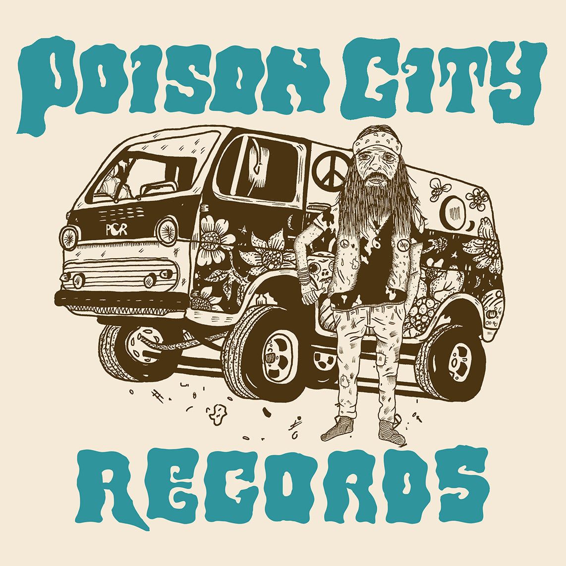 POISON CITY 'Burnt Out' t-shirt - original illustration by Grimoire (Hayden). Hand screen printed on IVORY (Bleach White) Comfort Colours tees.