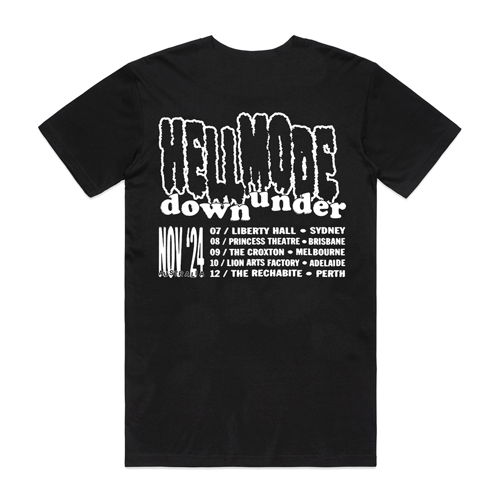 'Australian Tour' T-Shirt - front and back print - white printed on black AS colour t-shirt.